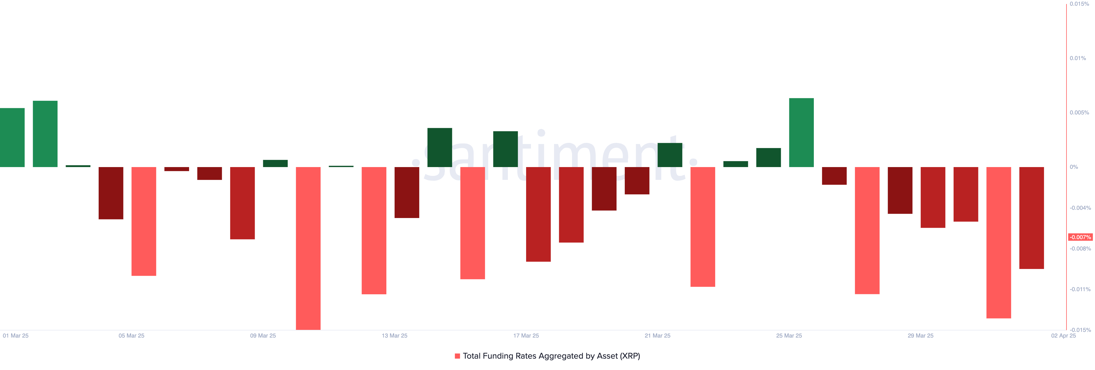 Amid XRP’s falling prices, the total number of wallet addresses holding the token in profit plunged to a year-to-date low of 5.24 million on March 31. This drop reflects the sustained bearish pressure on the altcoin as more holders find themselves in a losing position due to the token’s prolonged price downturn.