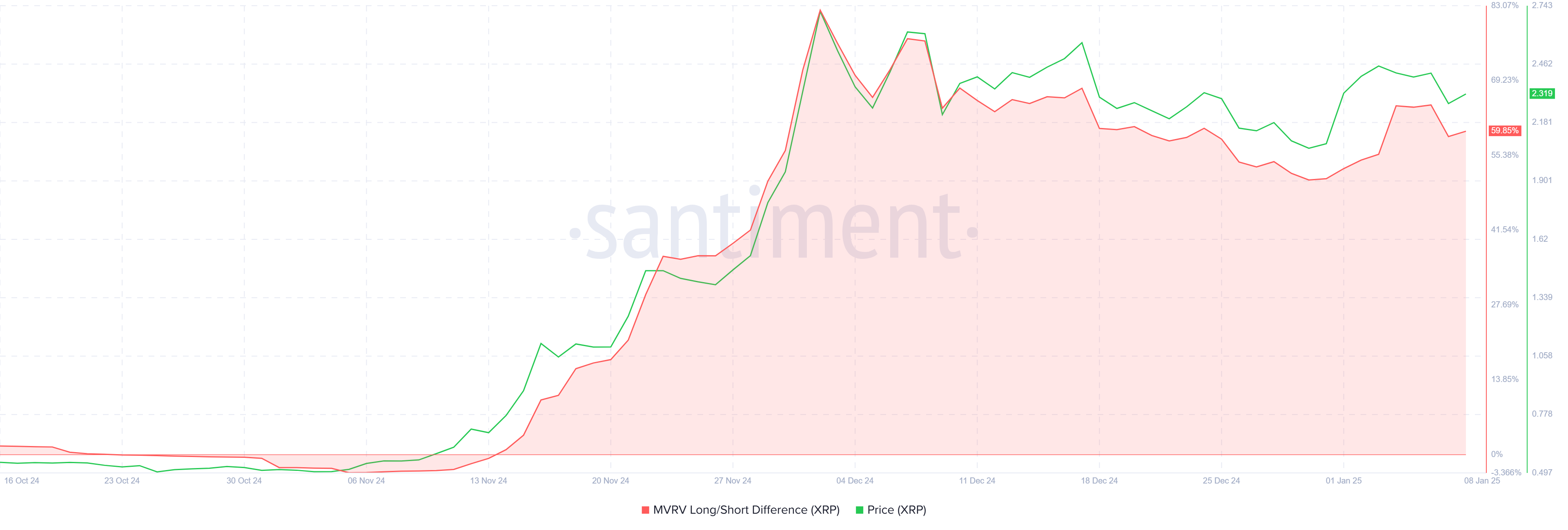 The MVRV Long/Short Ratio reveals that long-term holders are still sitting on profits, contributing to XRP’s stability. These investors, essential for the health of any cryptocurrency, are demonstrating resilience by holding their positions despite market stagnation.