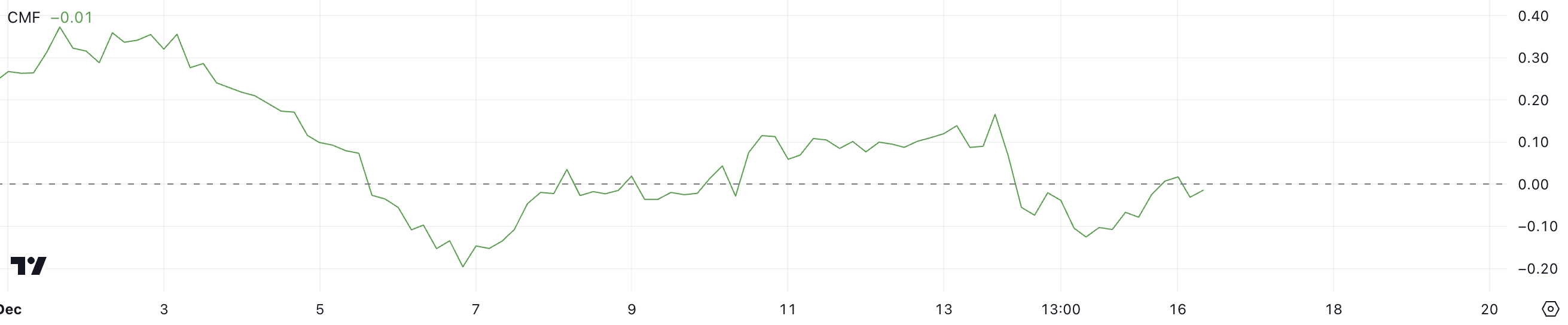 SponsoredThe CMF is a technical indicator that measures buying and selling pressure by combining price and volume data. Values above 0 suggest strong buying pressure, while negative values indicate selling dominance. Between November 28 and December 5, Ripple CMF remained highly positive, peaking at 0.37 on December 1, reflecting significant bullish activity during that time.