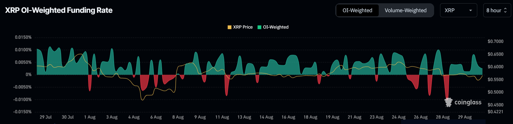 Additionally, XRP’s funding rate has shown consistent positivity over the past month, reflecting a bullish sentiment among investors. A positive funding rate typically indicates that traders are willing to pay a premium to hold long positions, betting on the price to rise.