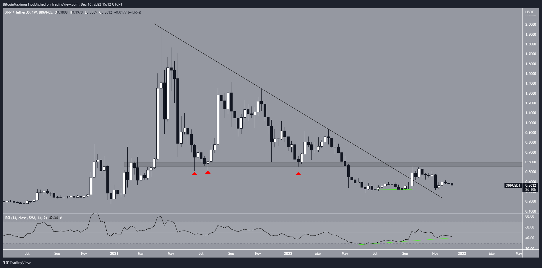 However, an XRP price movement above the long-term $0.58 horizontal area is required for the long-term trend to be bullish.