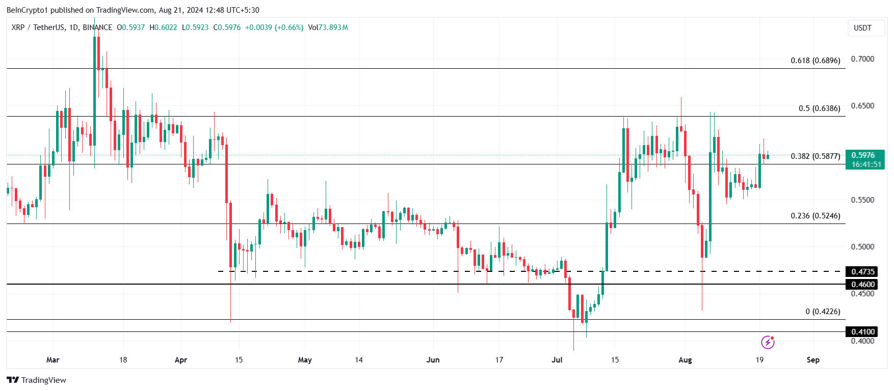 XRP price is trading at $0.59, above the crucial support level of $0.58, which coincides with the 38.2% Fibonacci Retracement line. In the past, this support floor has prevented the altcoin from noting significant losses.