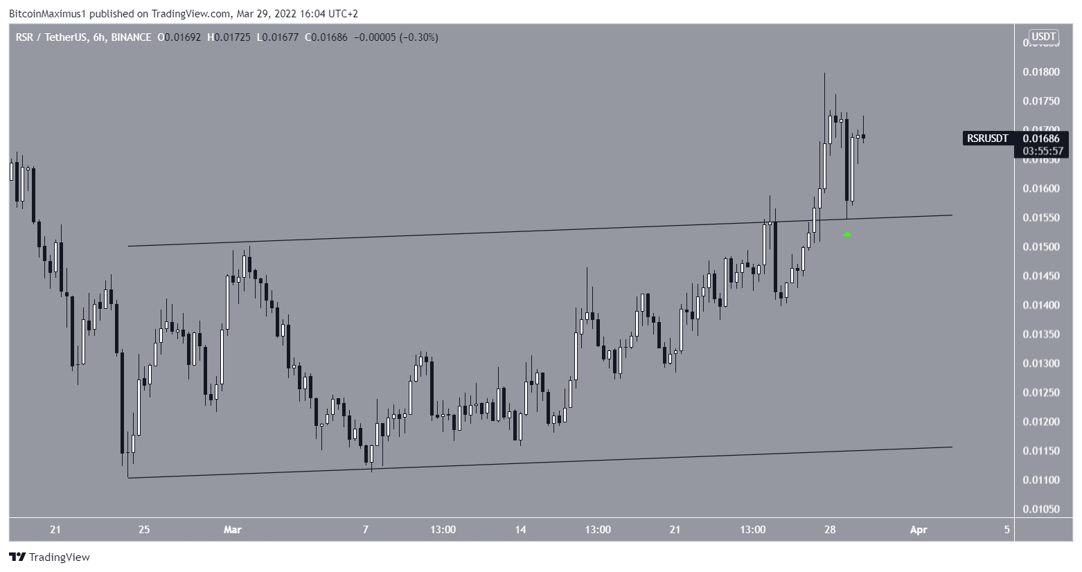 So far, RSR has reached a low of $0.011 on Feb 24. It has been moving upwards since.Â