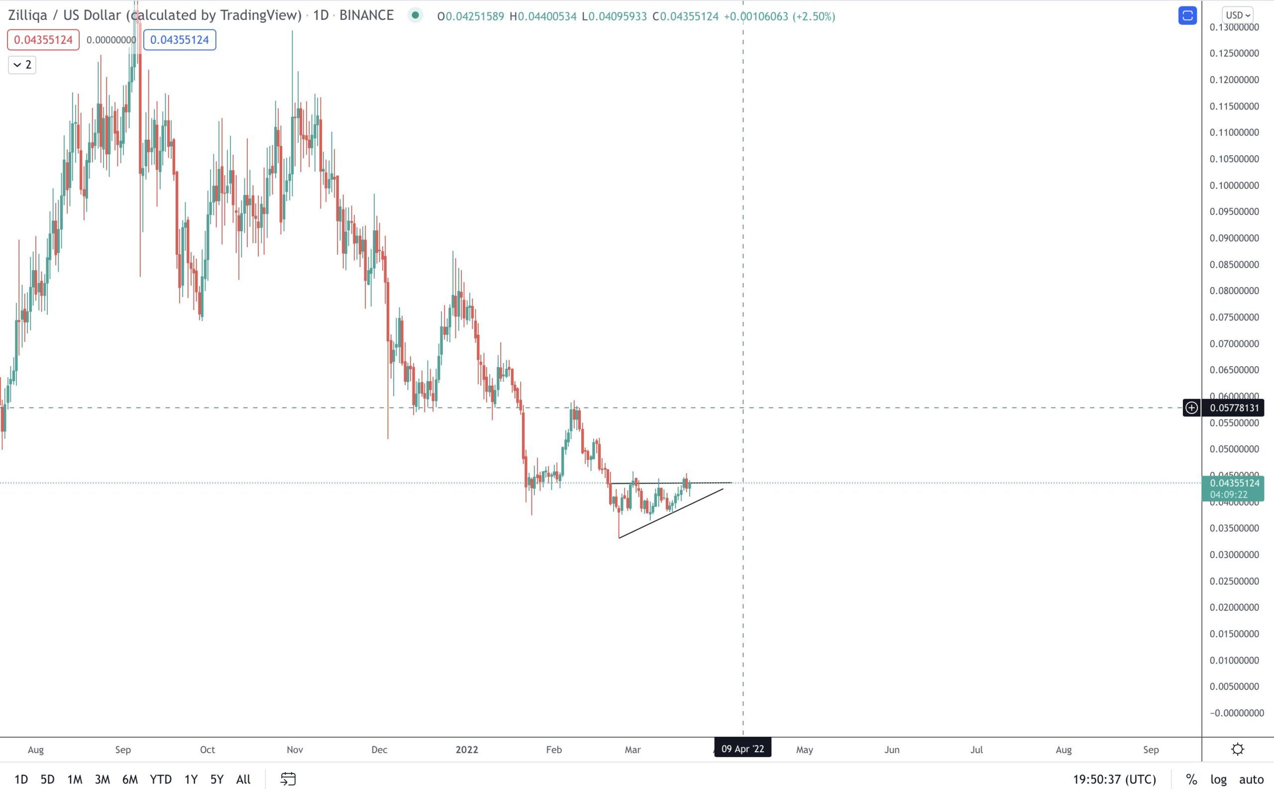 Ziliqa (ZIL) has been moving upwards since Feb 24. The March 12 breakout might have signaled that the entire correction since last May has come to an end.
