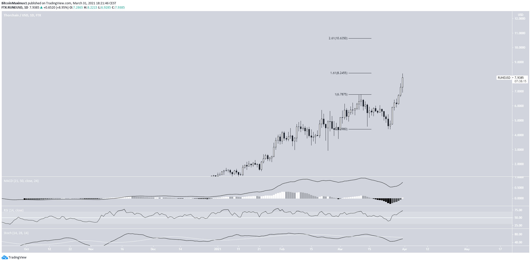THORChain (RUNE) reached a new all-time high price on March 31.