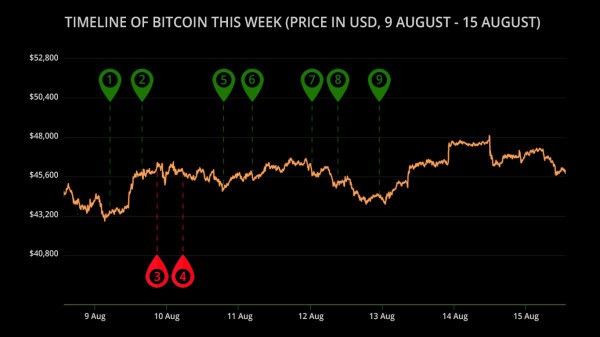 After briefly dipping below $43,000 on Monday, bitcoin has remained relatively steady around $46,000 during the week, briefly surpassing $48,000 over the weekend. It may be too early to call, but it appears as if it’s time to get overly bullish for the short term. Over the past week, the U.S. Senate passed their controversial U.S. infrastructure bill, Bloomberg and Kraken’s CEOs seem to agree bitcoin is heading to $100,000 this year, and the president of Argentina says the country is open to adopting bitcoin as legal tender. Here’s last week in bitcoin: