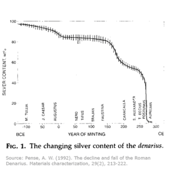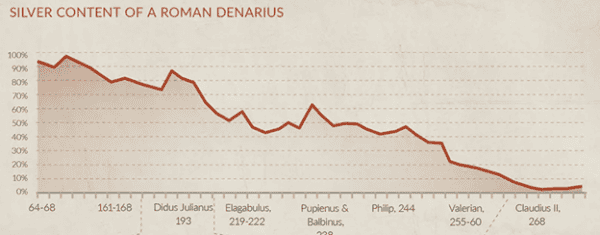 Almost two thousand years before the early 1920s Weimar Germany hyperinflation, there was the great currency debasement of the Roman Empire.