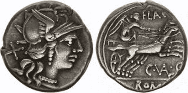 The gradual debasement of the Roman currency/coin can be tracked through the metal composition of the denarius. The silver denarius was minted for common use during the first two centuries of the Roman Empire. A four-gram coin was composed of 95% silver at the approximate time of A.D. 60. By A.D. 110, a 40-gram coin was made of only 85% silver.