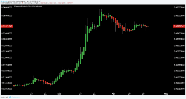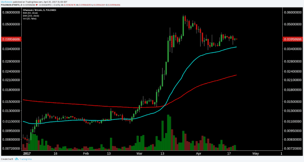 The remainder of the article will focus on the Poloniex ETH/BTC pair converted to Bitcoin’s current price ($1,240) in USD.