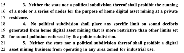 - Political subdivisions of the state creating requirements which are not in line with other data center requirements, and changing the zoning of bitcoin miners without proper notice.