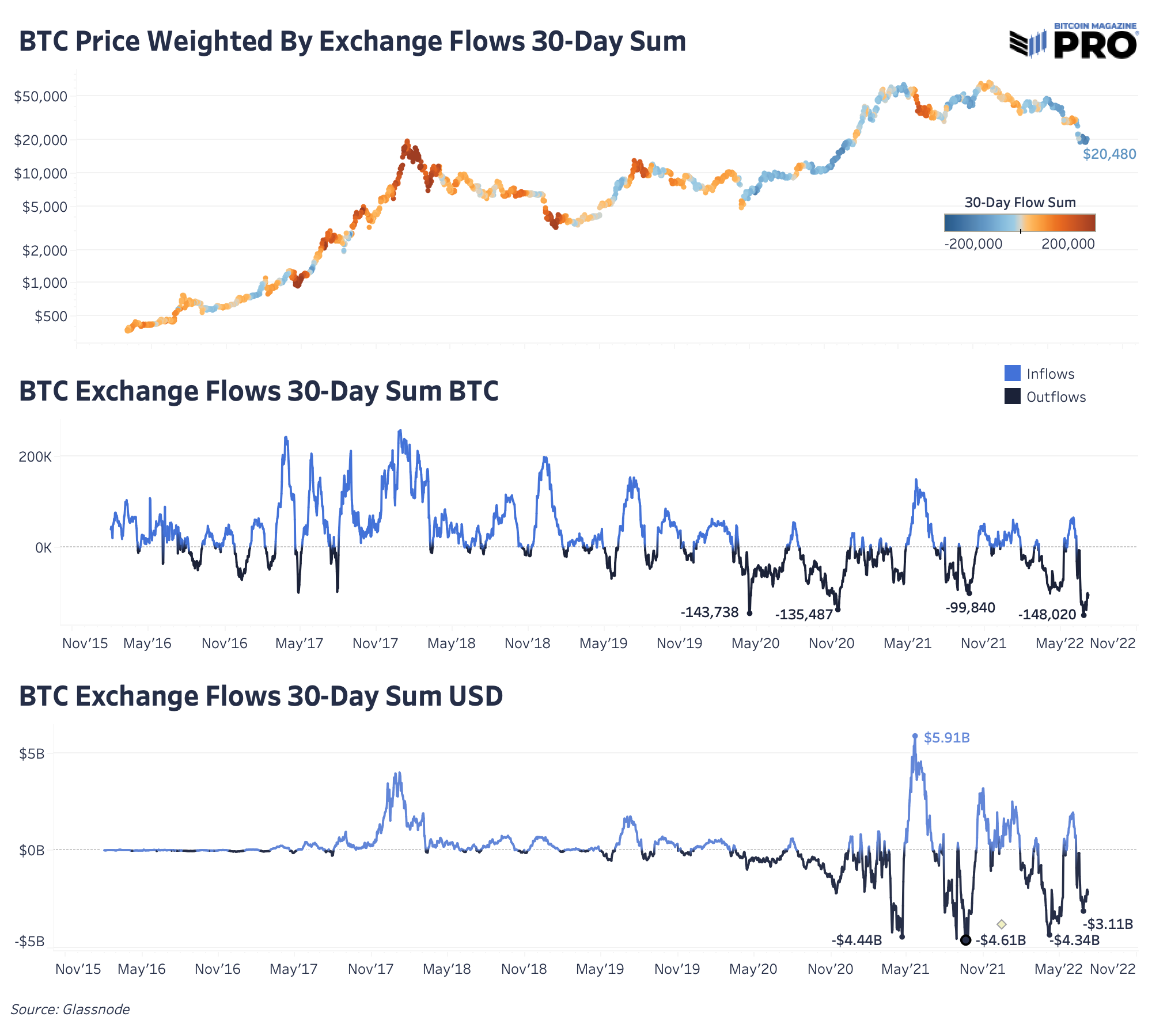 It will be interesting to see if the trend of decreasing exchange balances accelerates given the vast amount of counterparty risk that the crypto industry was exposed to over recent months.