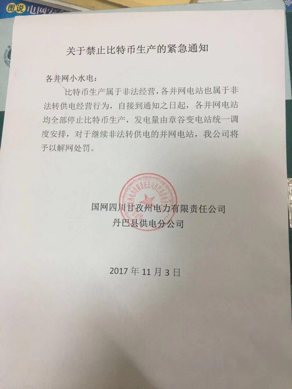 The recent rumor that a mining ban is becoming a reality was derived from a flyer, distributed by a power station in the Chinese province of Sichuan. The flyer stated, “Bitcoin is illegal thus the company shall not provide electricity to mining facilities.”