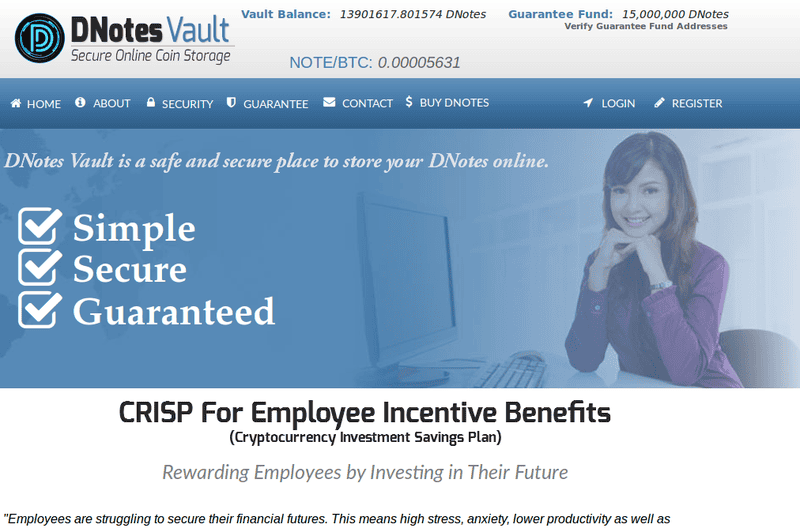CRISP for Employee Incentive Benefits will facilitate the distribution of digital currency called DNotes – a cryptographically secure digital currency which is the most reliably appreciating and stable currency in its class. DNotes has increased against the US dollar more than 30 fold since its inception in February 2014 and centers its business strategy on creating a stable trustworthy digital currency from the ground up for everyone, whether they are rich or poor. DNotes promotes trust and integrity for the long-term mutual benefit of all as it continues to work towards further capital appreciation. As DNotes positions itself to be the predominant digital currency used for global payments, with instantly cleared payments at near zero transaction costs, multiple strategic plans are systematically executed to ensure that DNotes becomes the foremost digital currency to supplement fiat currency worldwide.