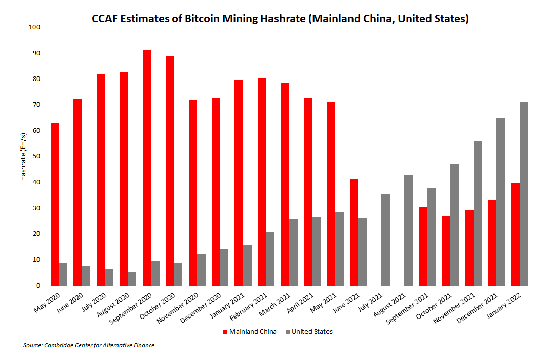 CCAF also relies on self-reporting by miners to aid its research on the geographic distribution of hash rate. The obvious problem with this exchange of information is that miners can lie. This point was made publicly on Twitter by Ethan Vera, co-founder of Luxor Mining, when he tweeted, “…the mining pools submitting data to Cambridge lied. They showed 0 hashrate in China when that clearly wasn’t the case.”