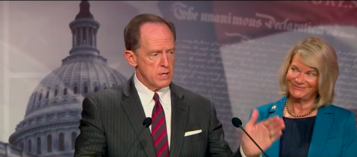 Senators Pat Toomey (R-PA) and Cynthia Lummis (R-WY) held a press conference Monday to address the $1.2 trillion infrastructure bill currently being considered by the Senate.