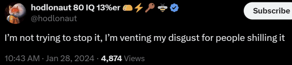 Source: https://twitter.com/hodlonaut/status/1751677477762617595?s=46&t=AJLfWYMcFR4tAoyfIomXHw[/caption]Thank you Bitcoin Magazine for letting me rant against ordinals!