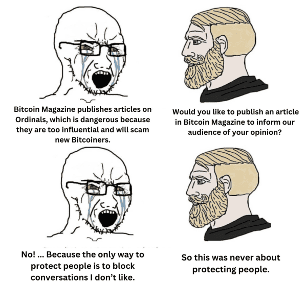 To all the haters, yes, even in Bitcoin Magazine can free debate flourish. I’m grateful for the opportunity to submit a dissenting opinion about Ordinals. With technical editor Shinobi at the helm, writers’ contributions are permissionless!