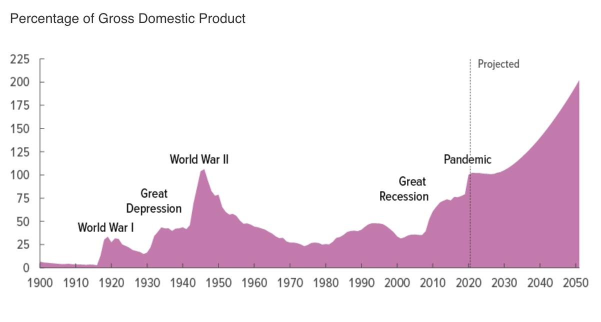 This is the Congressional Budget Office’s (CBO) projection of U.S. federal government debt: