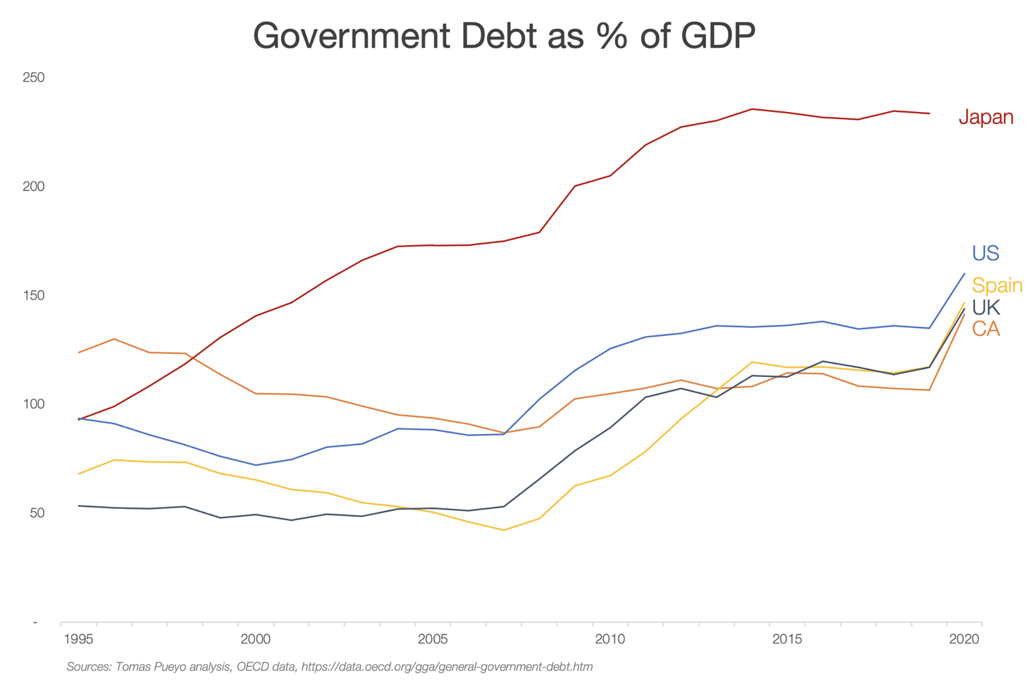 Governments in developed countries are more in debt today than after WWII.