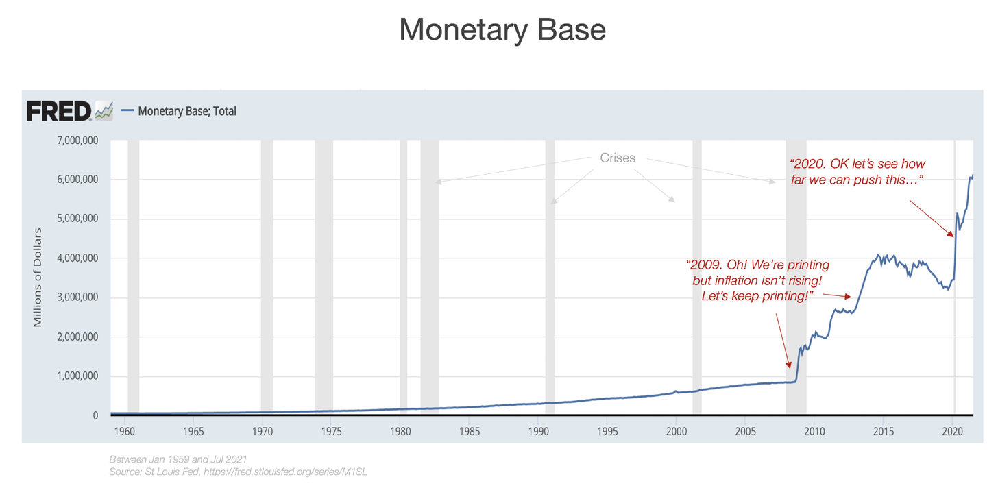 It took 96 years for the Federal Reserve to print $1 trillion, but six years to reach $4 trillion (after 2009). Since the beginning of the pandemic, the money supply has doubled. But this time, it wasn’t without consequences.