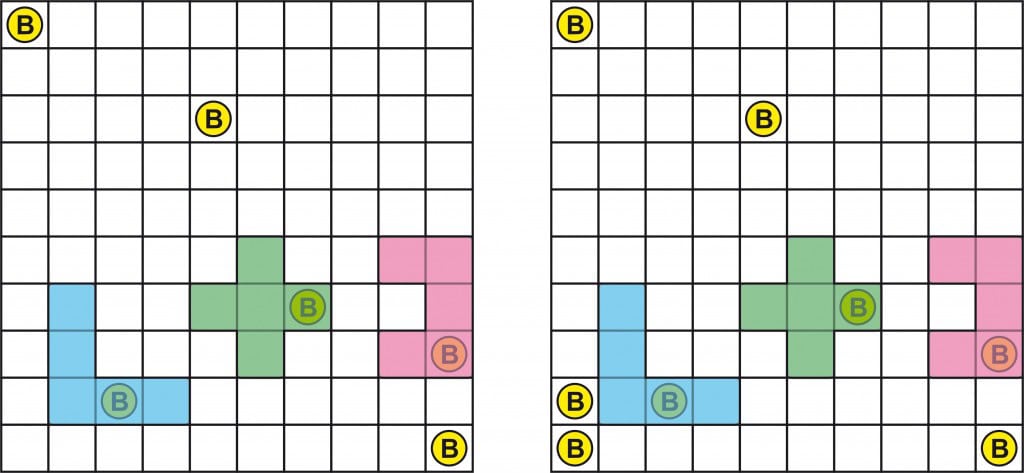 Secondly, and by turn, each player chooses a pentomino shape. This pentomino will be his ‘harvester’, and the only piece he will use during the game.