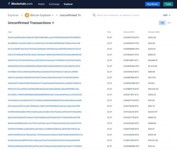 “Moreover, applications like exchanges and blockchain explorers will probably always use BTC as their bitcoin unit of choice because they need to list large and small amounts together in a common format. Consider this screen grab of a list of unconfirmed transactions…” — Mark Nugent