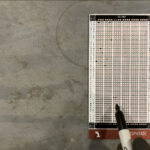 Then, carefully place the passphrase sticker on the steel plate so that all of the edges are aligned. Again, use the sharpie first and then double check you work before using the spring-loaded punch. You will notice that there are rows on the top and bottom edges indicating which column the character for a particular row belongs.