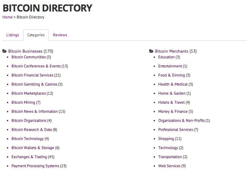 It’s hard to tell where we’re lacking in terms of categories, but we have a backlog of hundreds of bitcoin businesses and thousands of merchants which will be added to the directory over the next few months. The beta website released this week is just a prototype of the directory with a sample of about 88 bitcoin businesses. However, anyone can join for free and list their business today.