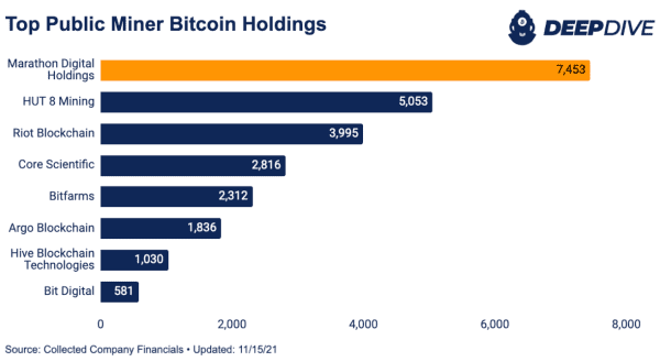 Generating revenue from loaned bitcoin to cover costs allows public miners to better execute on their increased HODL strategies. The Hut 8 bitcoin treasury is now 5,503 BTC which is already up 68% since March of this year. It’s the second-largest public miner treasury behind Marathon. Marathon and Riot, major public miners that report November production updates, both increased their bitcoin treasuries over the last month.