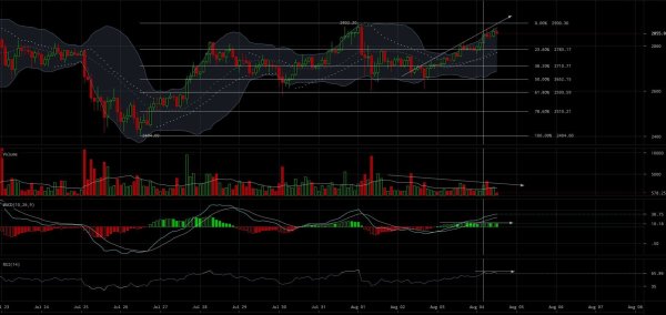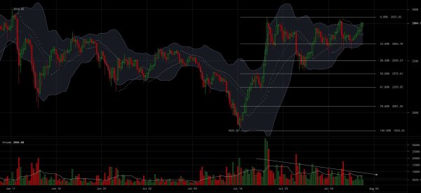 As discussed in the previous BTC-USD market analysis, the market has begun to test and retest known support and resistance lines on both the macro and micro levels. Since finding its local bottom around $1,800, BTC-USD has paved a fairly clean schematic of support and resistance levels along the Fibonacci Retracement values: