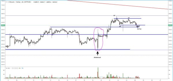 Figure 3: BTC-USD, Hourly Candles, Spring Testing Resistance Turned Support