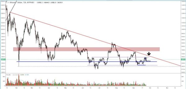 Last week, after a devastating move that shook the market violently up and down for a 7% move in just a few short minutes, bitcoin saw a major sign of strength as it proceeded to have a slow, but steady markup where it managed to establish a local high in the $6,800s:
