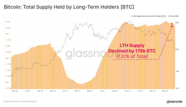 In terms of HODLers, the amount of bitcoin held by long-term holders increased by nearly 20% since April 2021 and has remained relatively constant, even with the slow grind down from the all-time high last fall. This doesn’t look very bearish to me. The ones who sold barely made a dent in long-term holder supply.