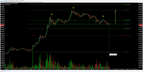 Overall, it is more likely that the head and shoulders on the four-hour timeframe will continue to complete after a throwback to resistance/support driven by the falling wedge.