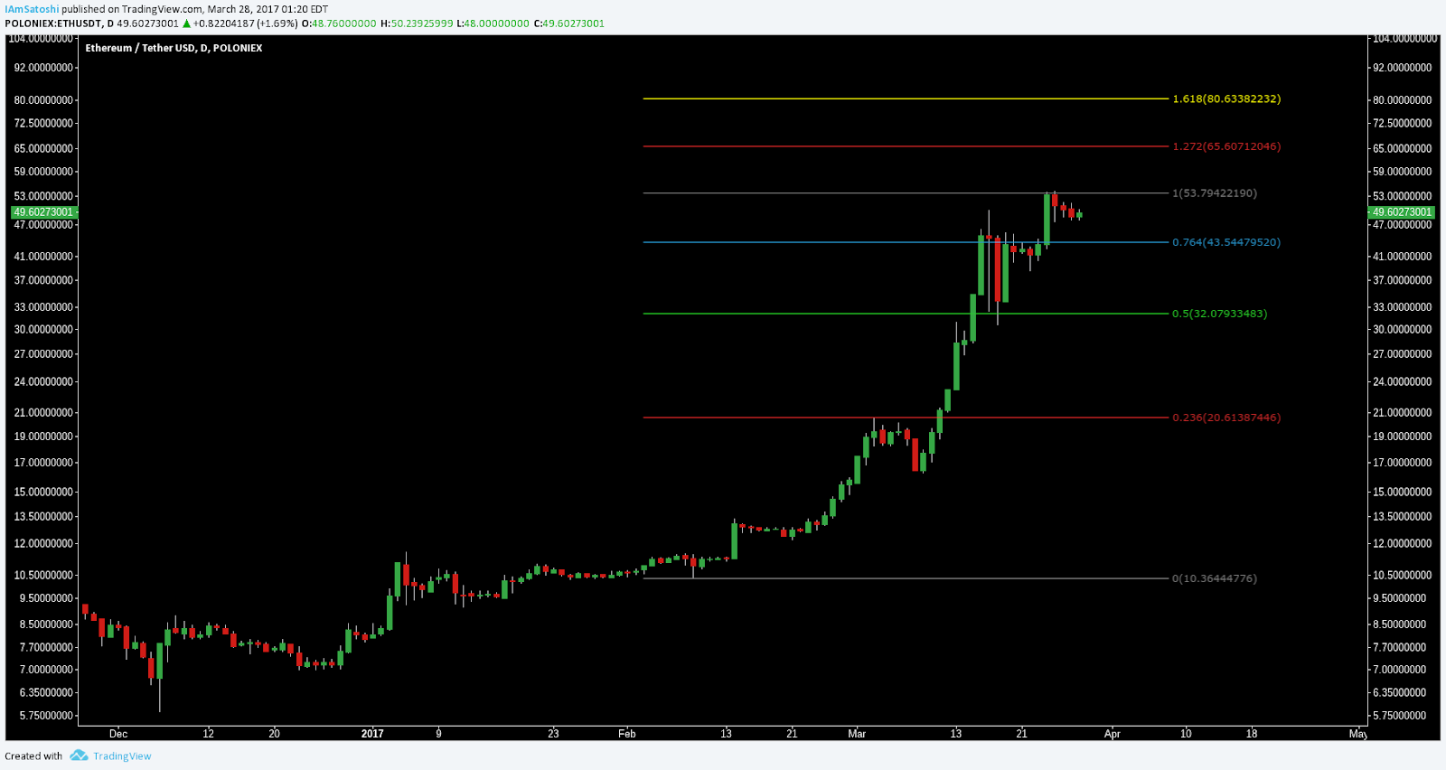 3. Should a Bitcoin hard fork occur, expect this to be a bullish event for ETH with a Fibonacci extension target of $65–80.