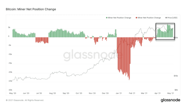 With hash rate lagging far behind price action over the past year, and a global semiconductor shortage occurring simultaneously, expect miners to continue to be net accumulators of BTC, as profit margins remain wide across the industry.