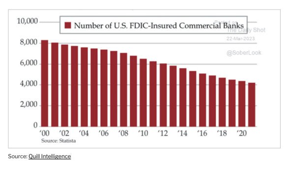 We will likely see the continued trend of banking Canadianization in the U.S., where 500 to 1,000 small and medium banks fail and get absorbed by larger banks.