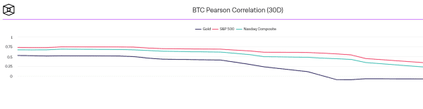 Interestingly, Bitcoin moves in sync with the S&P 500 and Nasdaq, with an impressive correlation. Meanwhile, the correlation between Bitcoin and Gold has sharply decreased recently, contrasting with claims that investors see crypto as a safe haven or hedge against inflation, a role traditionally played by Gold.