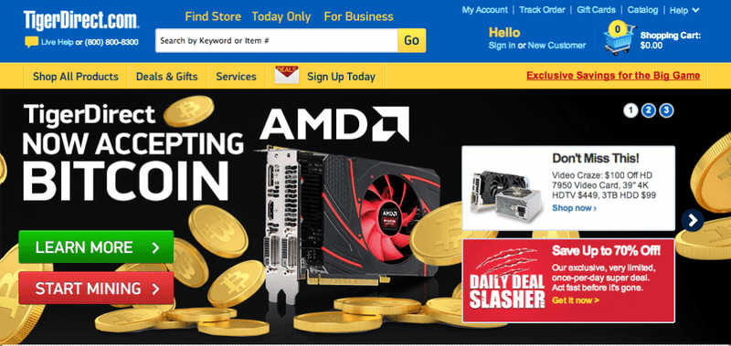 TIGERDIRECT IS THE FIRST MAJOR INTERNET RETAILER TO ACCEPT BITCOIN VIA BITPAY