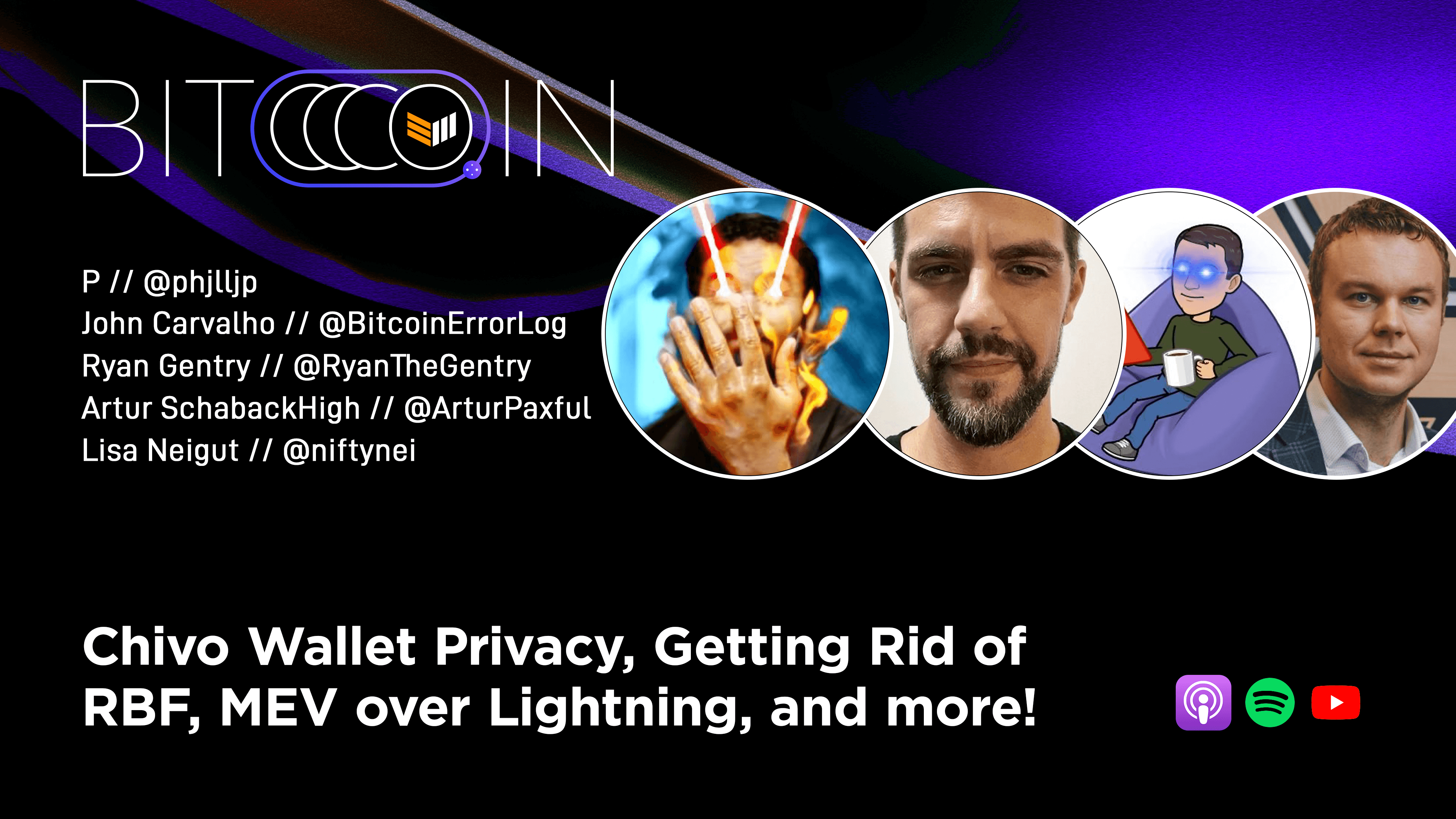 In this Twitter Spaces episode hosted by Bitcoin Magazine, P (@phjlljp) is joined by a number of professionals who are heavily involved in the Lightning space: John Carvalho (@BitcoinErrorLog), Ryan Gentry (@RyanTheGentry), Artur Schaback (@ArturPaxful), Lisa Neigut, Vivek(@Vivek4Real_), and Shinobi(@brian_trollz). They begin by discussing privacy concerns regarding the Chivo wallet in El Salvador and what steps Salvadorans can take to use Bitcoin more privately. The discussion later moves to the lightning network, where they discuss zero-conf transactions and the merits of RBF (Replace-By Fee), issues with MEV (Miner Extracted Value) on lightning and what could be done to prevent it, and more.
