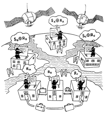 Chaum compare ce processus à un groupe de personnes assises autour d'une table de jeu. Chacun coupe le jeu, le mélange et le passe à la personne suivante. Imaginons que trois d'entre eux soient des requins des cartes qui savent mélanger les cartes de manière à déterminer l'emplacement des cartes dans le jeu.