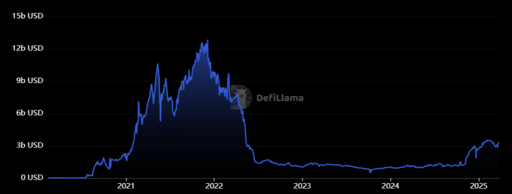 As of March 2025, the total value locked (TVL) in yield aggregators was $3.5 billion, which is about a third of the TVL on individual yield protocols.