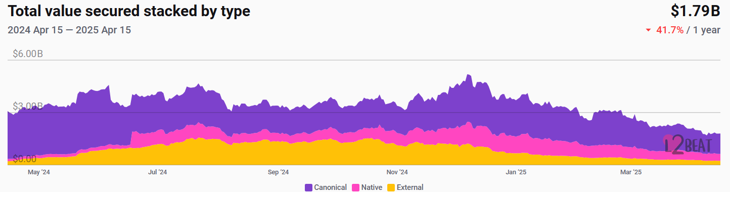 As per L2Beat data from mid-April 2025, ZK rollups, most of which are zkEVMs, have a TVL of $1.77 billion, accounting for only 5% of the TVL across all Ethereum Layer 2s. Optimistic rollups dominate the market with a market share of nearly 80%.