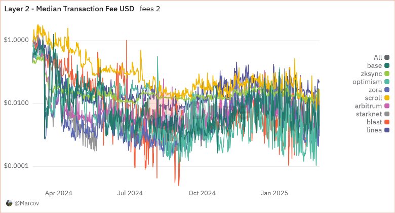 - L2 Median Transaction Fee (@Marcov via Dune)