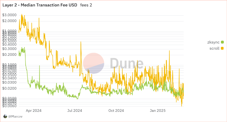 - zkSync & Scroll Median Transaction Fee (@Marcov via Dune)
