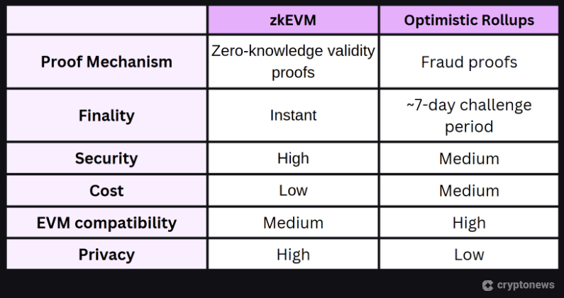 Therefore, zkEVMs achieve faster finality, although they require specialized hardware to generate ZKPs.