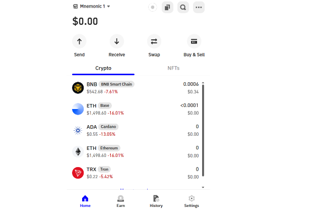 - Now you can start using the wallet by switching between different chains and depositing tokens by copying and sharing the wallet’s address.