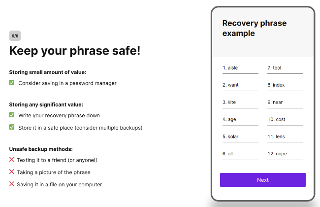 - Protect your seed phrase: Never share it, and never store it on your social media sites. Store it offline only.