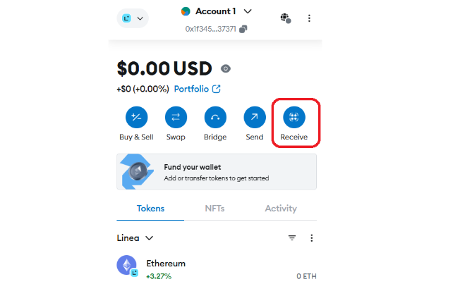 To receive crypto, simply click on “Receive” on your MetaMask or any other wallet extension, copy your public address (it starts with 0x), and share it with the sender or paste it on your custodial wallet from which you want to make the deposit.