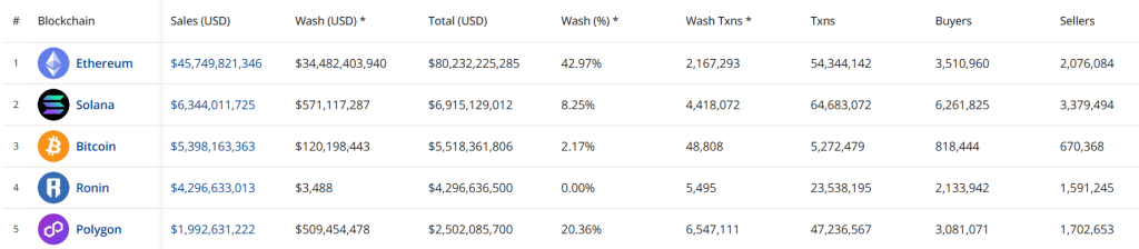 Solana has surpassed Bitcoin, Ronin, and Polygon to become the second-largest NFT chain by trading volume. It also boasts the highest number of buyers and sellers.